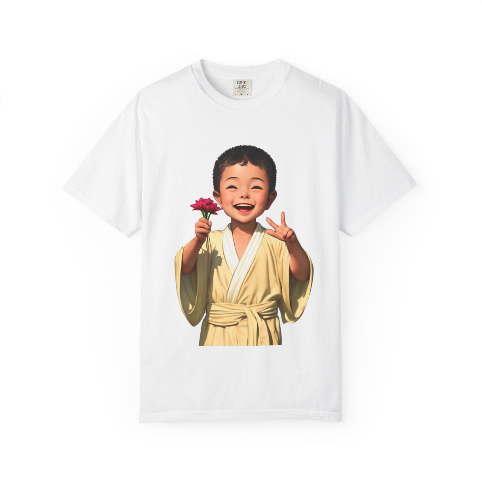 Una camiseta cómoda y atemporal con un diseño de un joven Buda y una flor, perfecta para quienes buscan inspiración espiritual. Su ajuste relajado y el clásico cuello redondo la hacen adecuada tanto para un estilo casual como para ocasiones más especiales. Ideal para adultos que desean una prenda única y significativa en su vestuario, perfecta para entusiastas de la meditación o personas espirituales. También es un regalo ideal para eventos espirituales, cumpleaños o festividades.